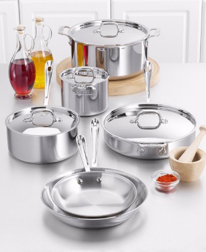 Great kitchens start with top-quality, high-performance All-Clad cookware. The popular stainless steel collection is constructed of a durable, hand-polished 18/10 stainless steel surface and a pure aluminum core. It features extra-long, stay-cool handles and snug-fitting lids. Whether you(tm)re an accomplished home cook or just a beginner, let All-Clad cookware be your kitchen companion for years to come. 5-piece set includes 8" fry pan, 2-quart covered sauce pan and 3-quart covered casserole. All-Clad cookware carries a limited lifetime warranty.