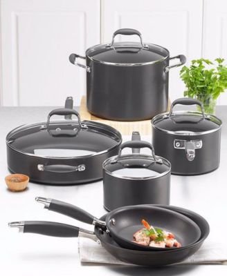 The cookware preferred by professional chefs. Heavy gauge, hard-anodized aluminum exteriors heat evenly without hot spots. Interiors coated with DuPont Autograph® advanced inside/outside nonstick(tm) an exclusive reinforced technology that has been intensively restaurant tested for superior durability. Innovative Sure Grip(tm) handles crafted in 18/10 stainless steel and silicone rubber for a cool, comfortable grip. Domed tempered glass lids include Sure Grip(tm) lid handles. Manufacturer(tm)s lifetime limited warranty.