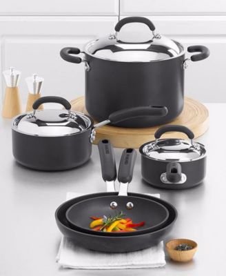 Achieve delicious results with this superior cookware from Circulon. Guaranteed to outlast all other nonstick cookware, Circulon 2 features the exclusive TOTAL hard-anodized Hi-Low food release system, combining "Hi-Low" wave technology and an advanced nonstick formula that protects against abrasion. Nonstick exterior for easy cleaning. Heavy gauge hard anodized aluminum is twice as strong as steel, providing superior durability and heat distribution. Heat-resistant plastic handles are oven safe to 350 degrees and riveted for increased durability. 18/10 stainless steel lids have a tight seal to lock in flavor. Hand wash. Lifetime customer satisfaction guarantee.