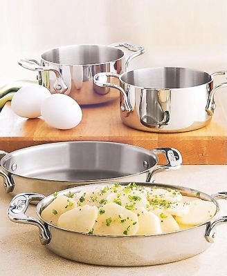 Every cook and kitchen deserves All-clad cookware. The high-quality stainless steel surface ensures a polished, easy to maintain surface. Easy-grip signature handles on either side. The bakers take your dishes from oven to tabletop with ease and style. Each baker is 7". The ramekins are perfect for serving or reheating soups, sauces or stews. Sold in sets of 2. Lifetime warranty.