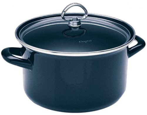 This is the second of these pots we have owned. The first was a very durable, useful pot. The size and enamel-on-steel construction made it large enough to cook pasta or soup on top of the stove and strong enough to cook a pot roast in the oven, but small enough to fit easily into a dishwasher. The glass top allows you to monitor cooking without releasing heat.