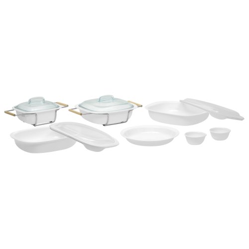 - Also with 2 ramekins, 9-inch pie plate, and 2 serving cradle for the casseroles