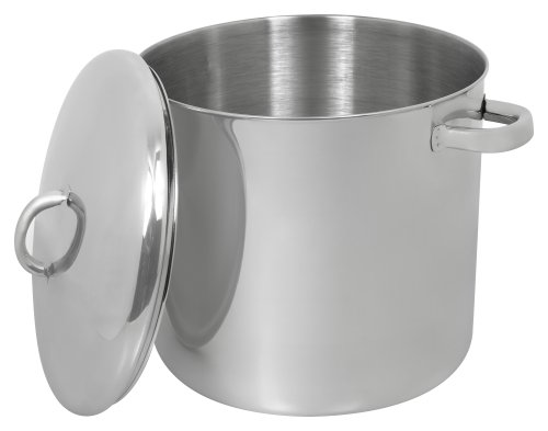 - 12-quart pot for simmering soups and stocks, poaching poultry, and cooking pasta- Made of mirror-finish, 18/10 stainless steel with aluminum disk to spread heat quickly and evenly