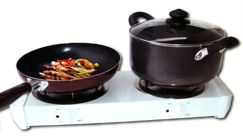 The Double Buffet Burner plugs right into an electrical outlet, so get an extension cord and cook outside on your deck, patio, or backyard. Is there a big school or office function that you want to cook for? Bring the Double Buffet Burners and cook inside, in the school yard or even the office parking lot! The Double Buffet Burners also serve as a great way to cook in a one room apartment, or your dorm!
