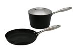 Scanpan Professional features clean, elegant lines for a most unique cookware design. The stainless steel covers and handles are polished in a two-tone matt-and-mirror finish, setting an exciting visual contrast to the all black pan body. Scanpan Professional is made from a core of solid squeeze-cast aluminum, forged into shape with 200 tons of pressure. The optimum thickness of the pan base prevents warping and keeps the pan base perfectly flat, especially important when used with glass top or ceramic ranges. The patented nonstick surface is created by firing a ceramic-titanium particles into the pan and a specially formulated nonstick compound is embedded in the ceramic-titanium surface. Scanpan Professional is safe to use with metal utensils and comes with a Lifetime Warranty. Made in Denmark. 3-piece Starter Set includes: 9.25-inch Fry Pan, 3-quart Sauce Pan with Lid.
