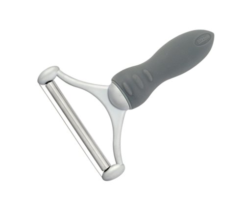 The KitchenArt Gel Grip Cheese Slicer features a patented ergonomic design, a soft silicone handle that fits any hand type. This unique utensil is dishwasher safe and comes in an elegant satin silver and gray finish.