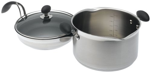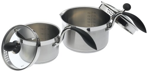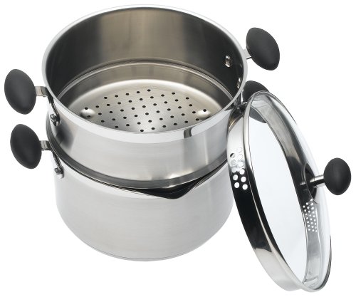 - Set includes 9-1/2-inch nonstick frying pan; 2-quart casserole with lid; 4-quart casserole with lid; 6-quart casserole with lid; 9-inch steamer basket- 18/10 stainless steel with encapsulated aluminum base for even heat distribution