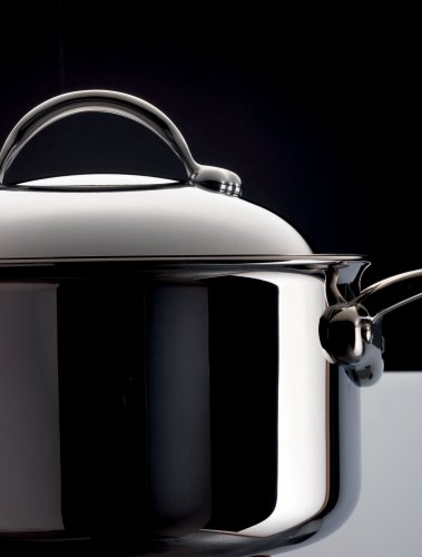 - High domed lids seal in flavors; ergonomically designed cast stainless steel handles