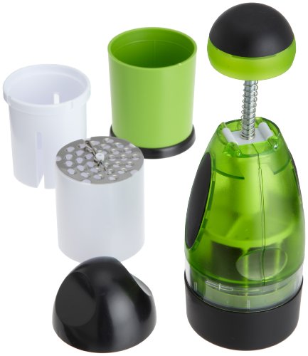 - Quickly chops fruits, nuts, vegetables and more- Self-contained base allows for eay chopping with or without a cutting board